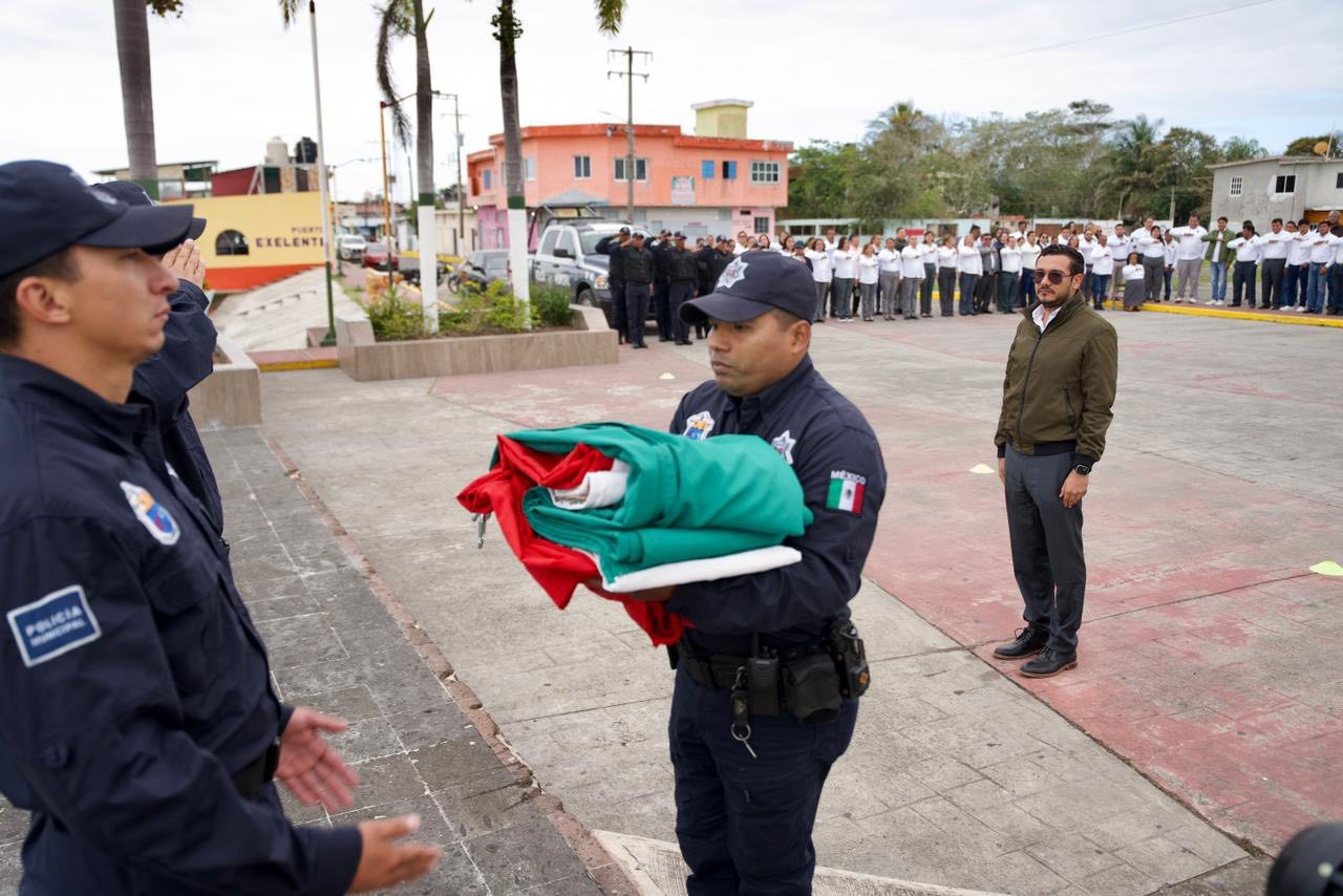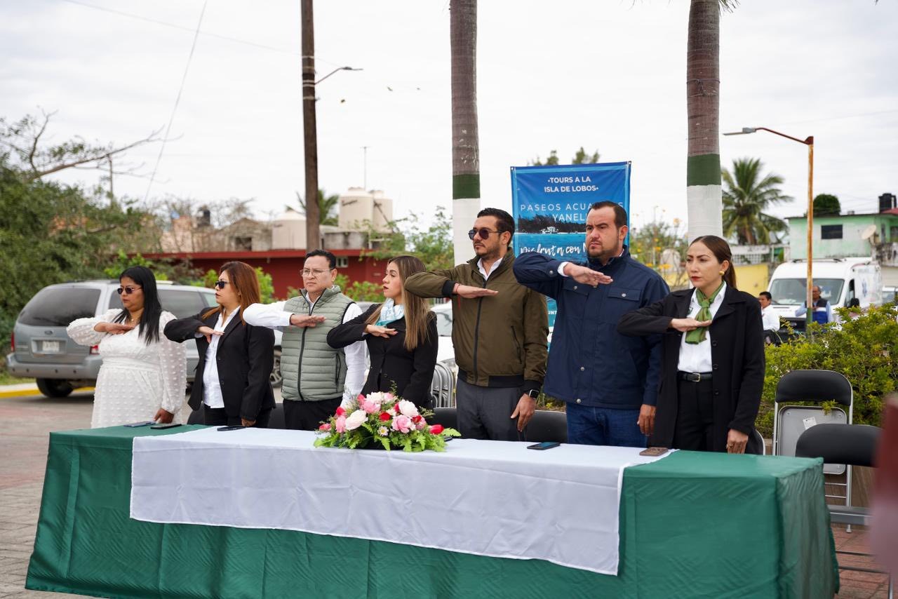 Tamiahua, Ver.— La mañana de este martes 24 de febrero, integrantes del Concejo Municipal encabezaron el acto cívico con motivo del Día de la Bandera, fecha emblemática que honra uno de los símbolos más representativos de la identidad y unidad nacional.