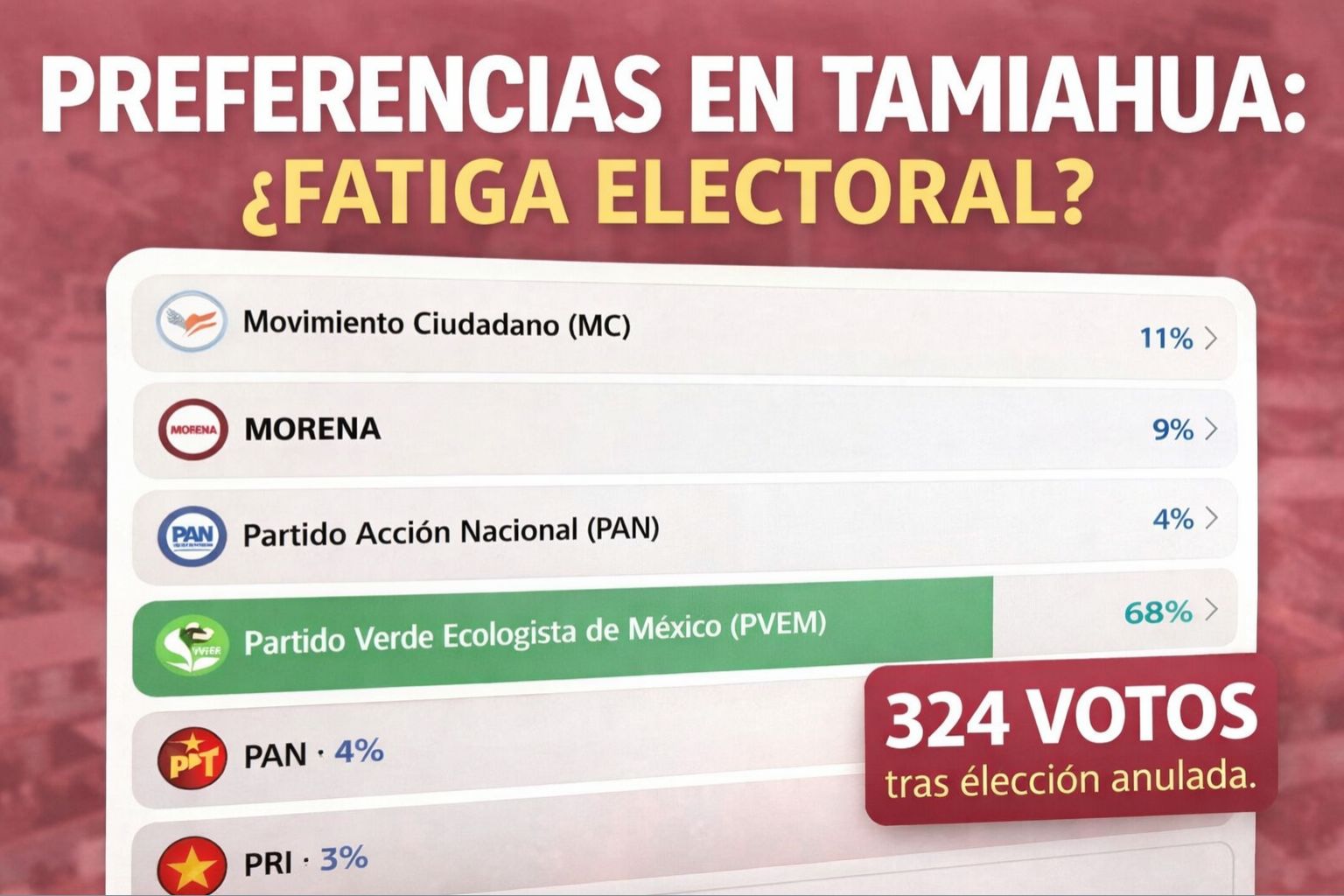 Tamiahua viene de una elección anulada. Hay desgaste político. Hay inconformidad. Y las elecciones extraordinarias suelen generar menos entusiasmo que una jornada ordinaria. También hay otro factor: en municipios pequeños muchas personas prefieren no exhibir públicamente su preferencia, ni siquiera en una encuesta digital.